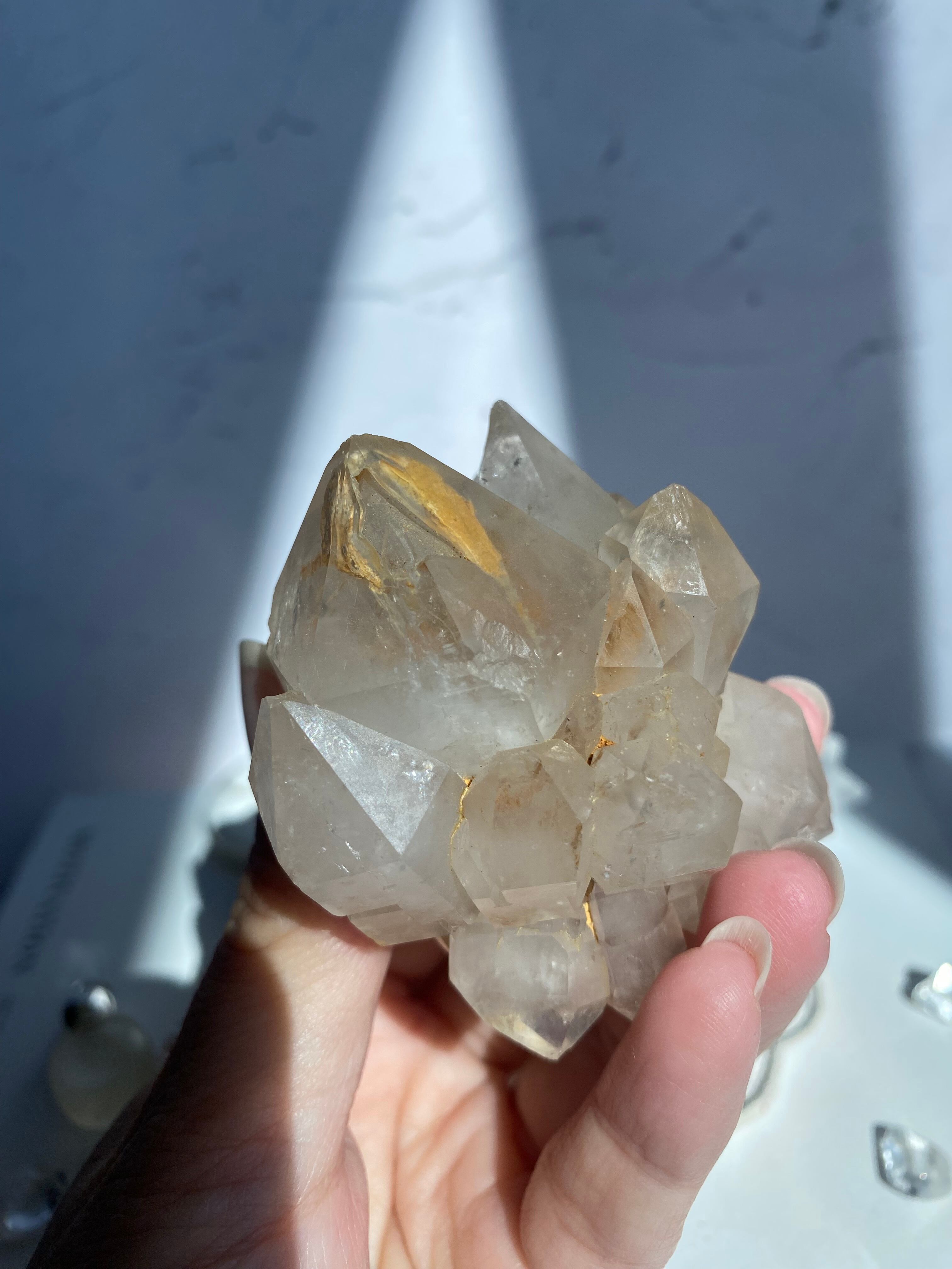 ややスモーキーっぽい色味を感じ、裏側まで魅力がいっぱいで見所が沢山!個性的で素敵なクラスターです。