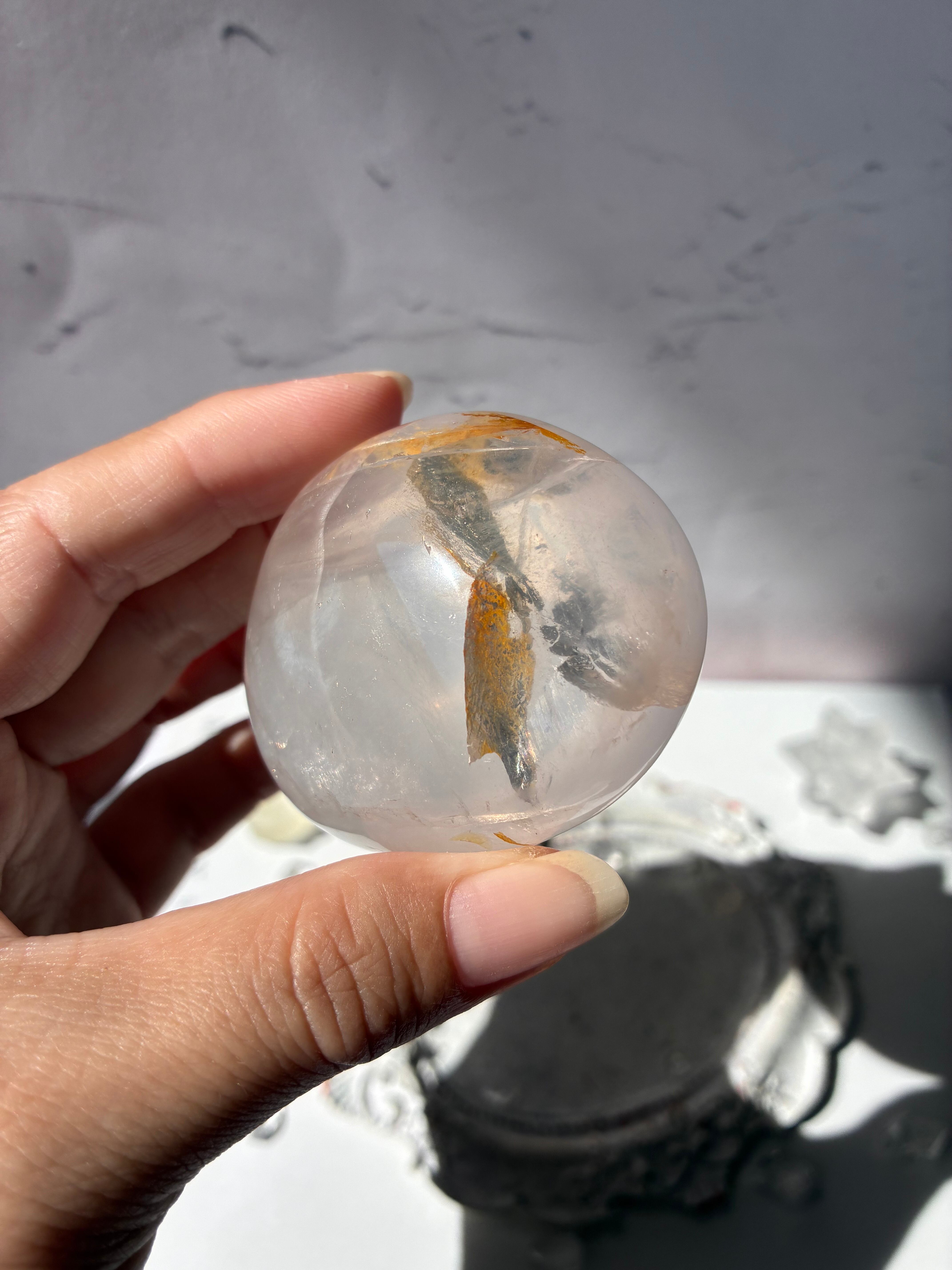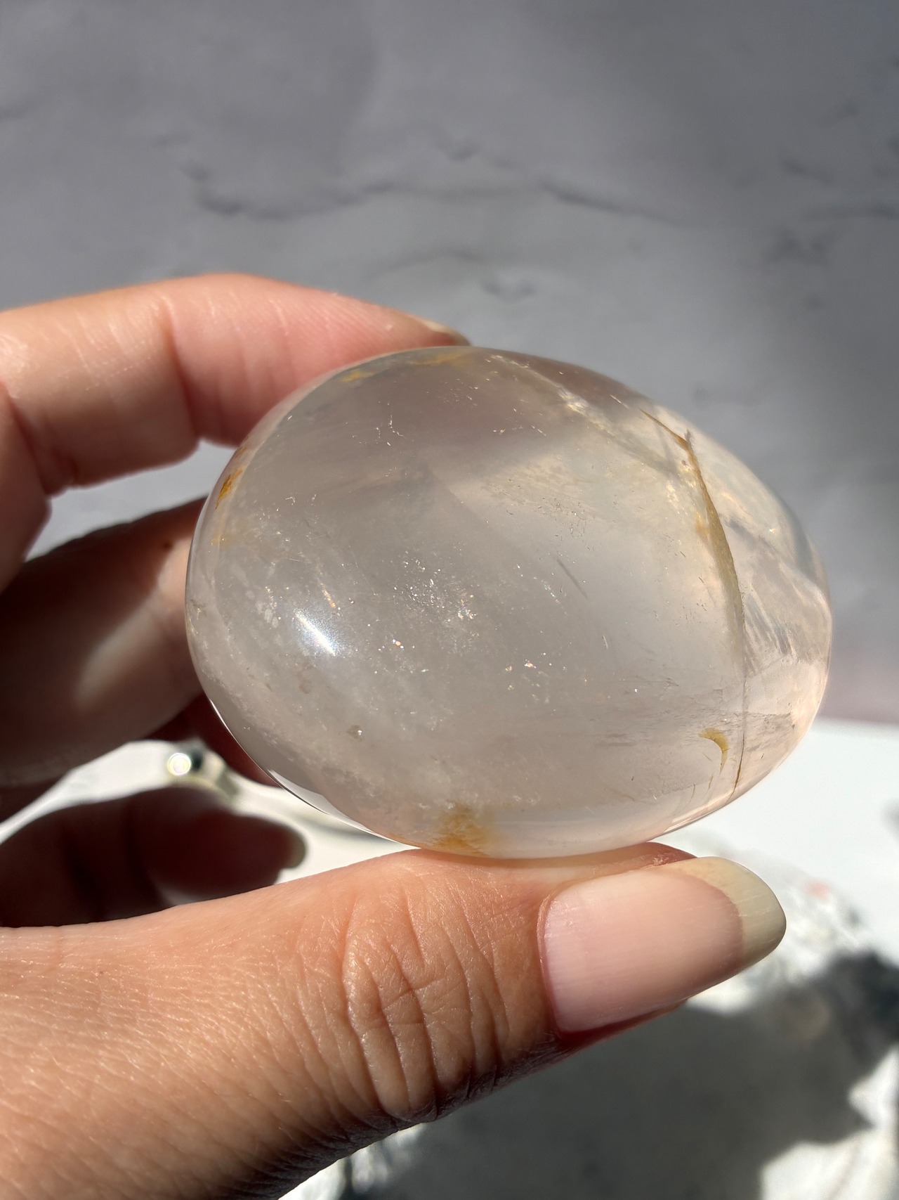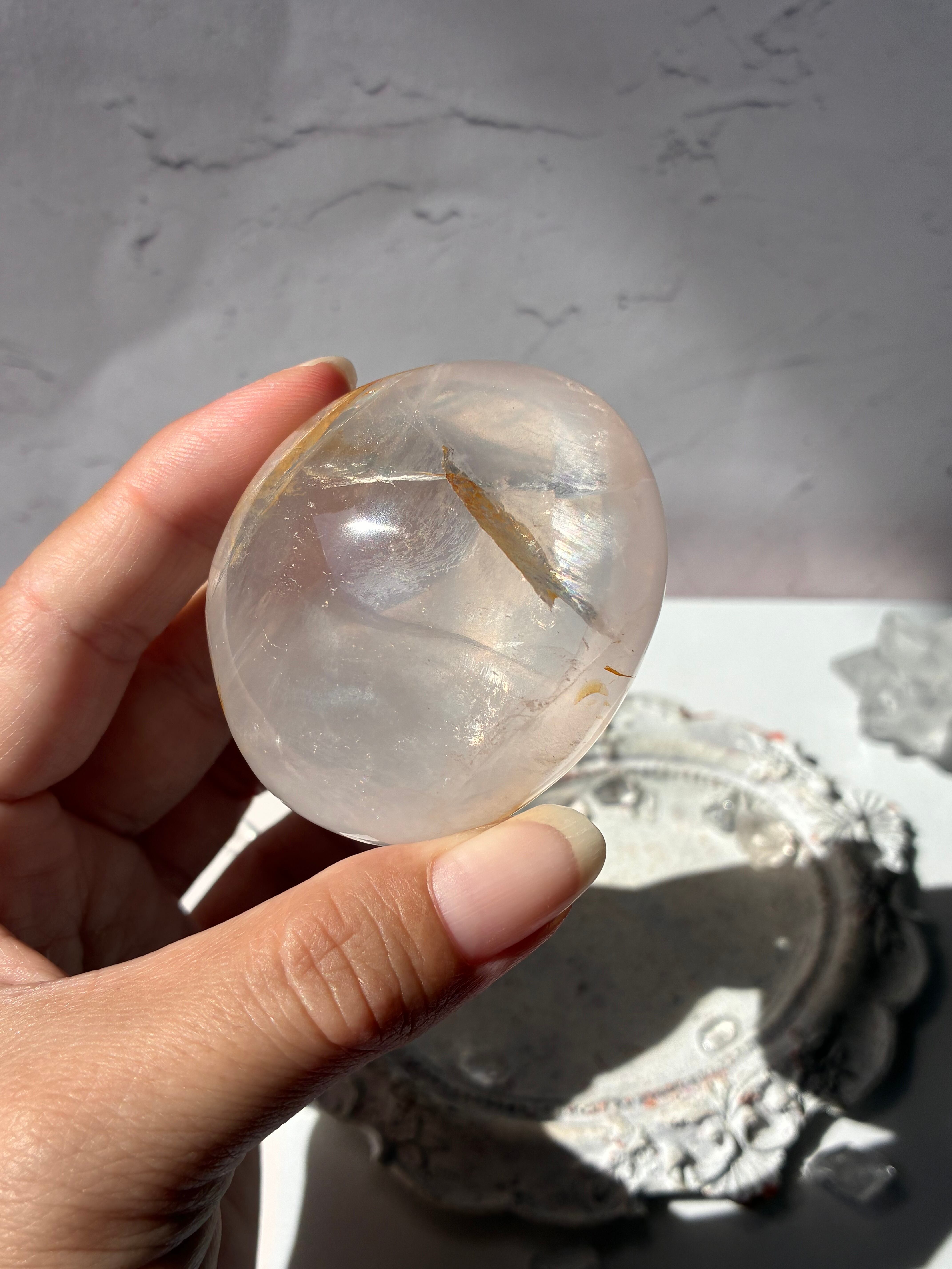 ほんのりピンク色で、イエローヘマタイトがインクルージョンしているのが特徴です♡