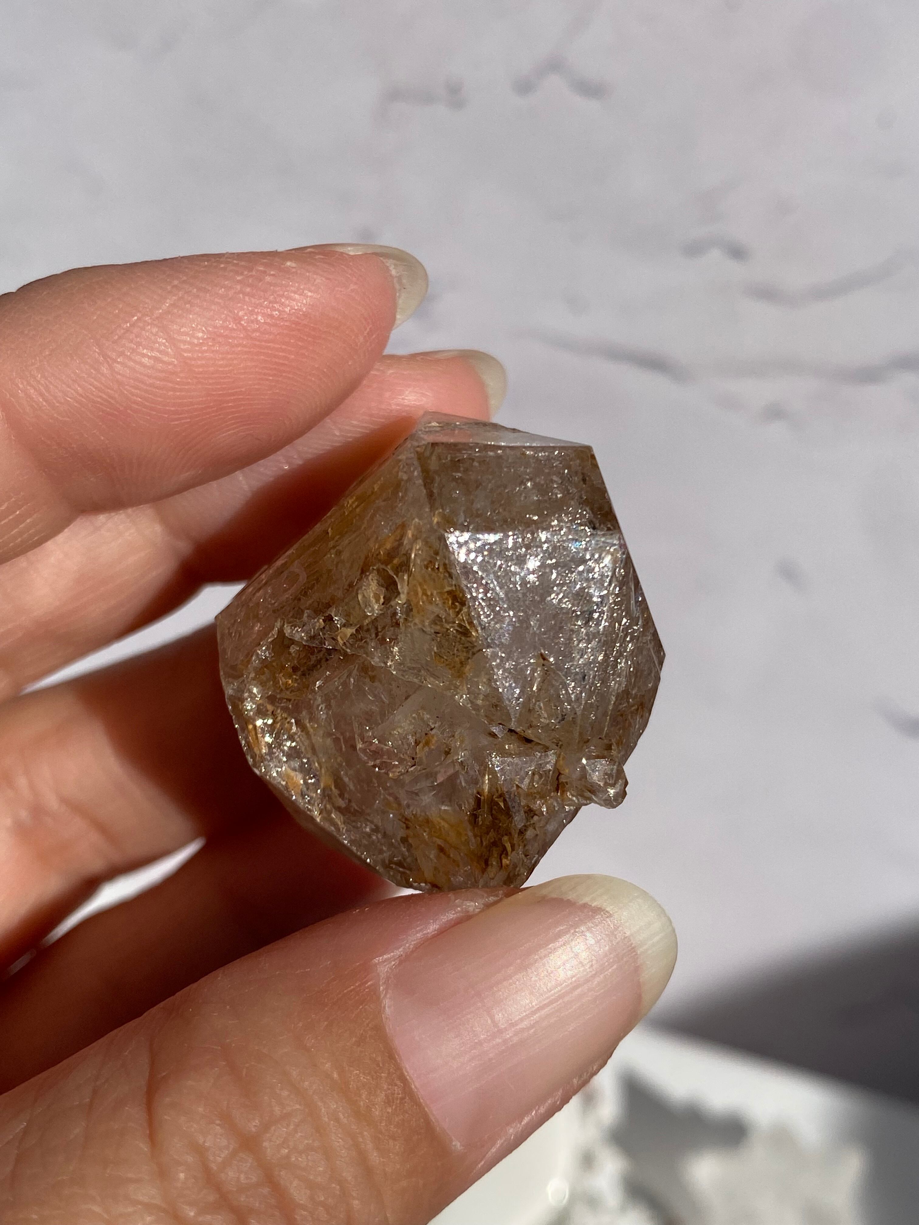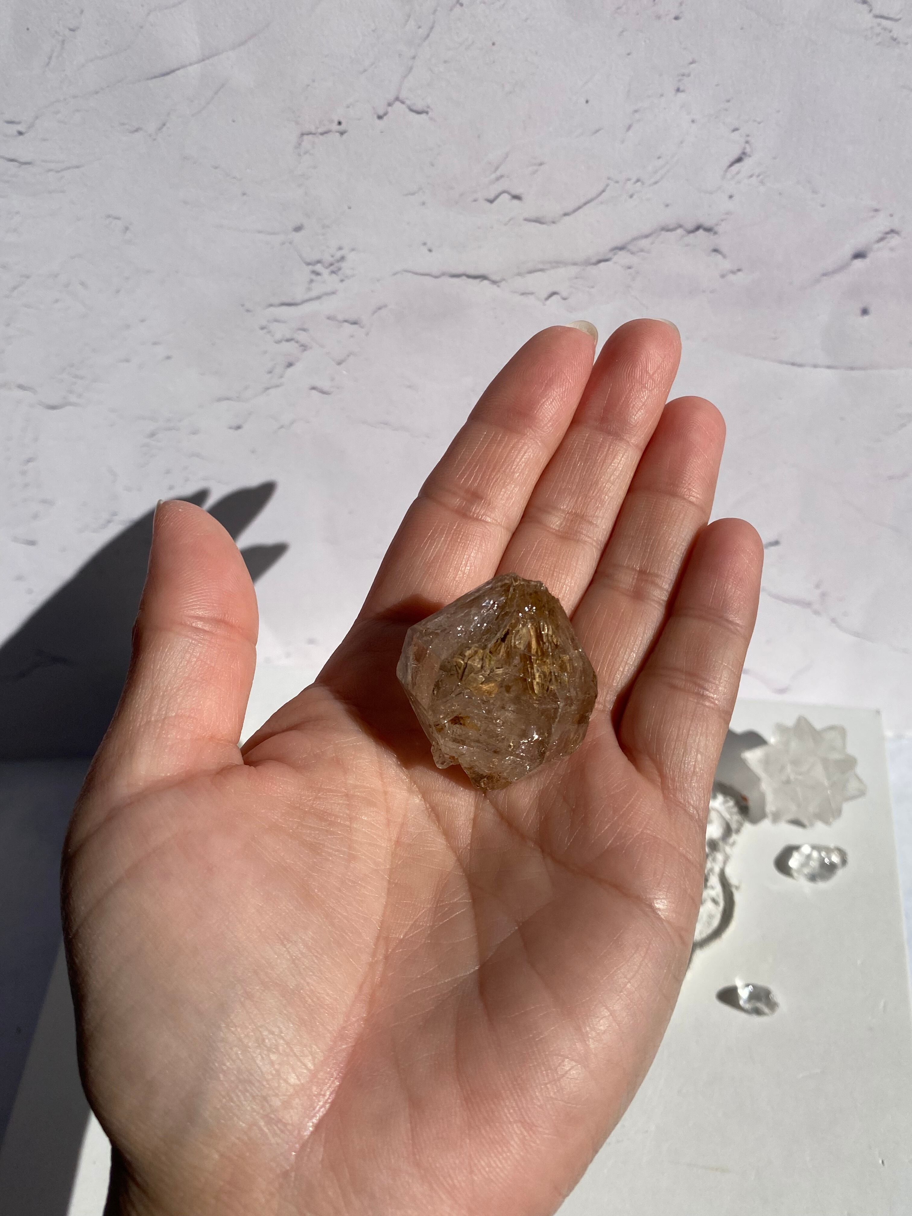 スケルタルクォーツやフェンスタークォーツと呼ばれる、特殊な形状が魅力な黄色泥を含むエレスチャルクォーツ♡