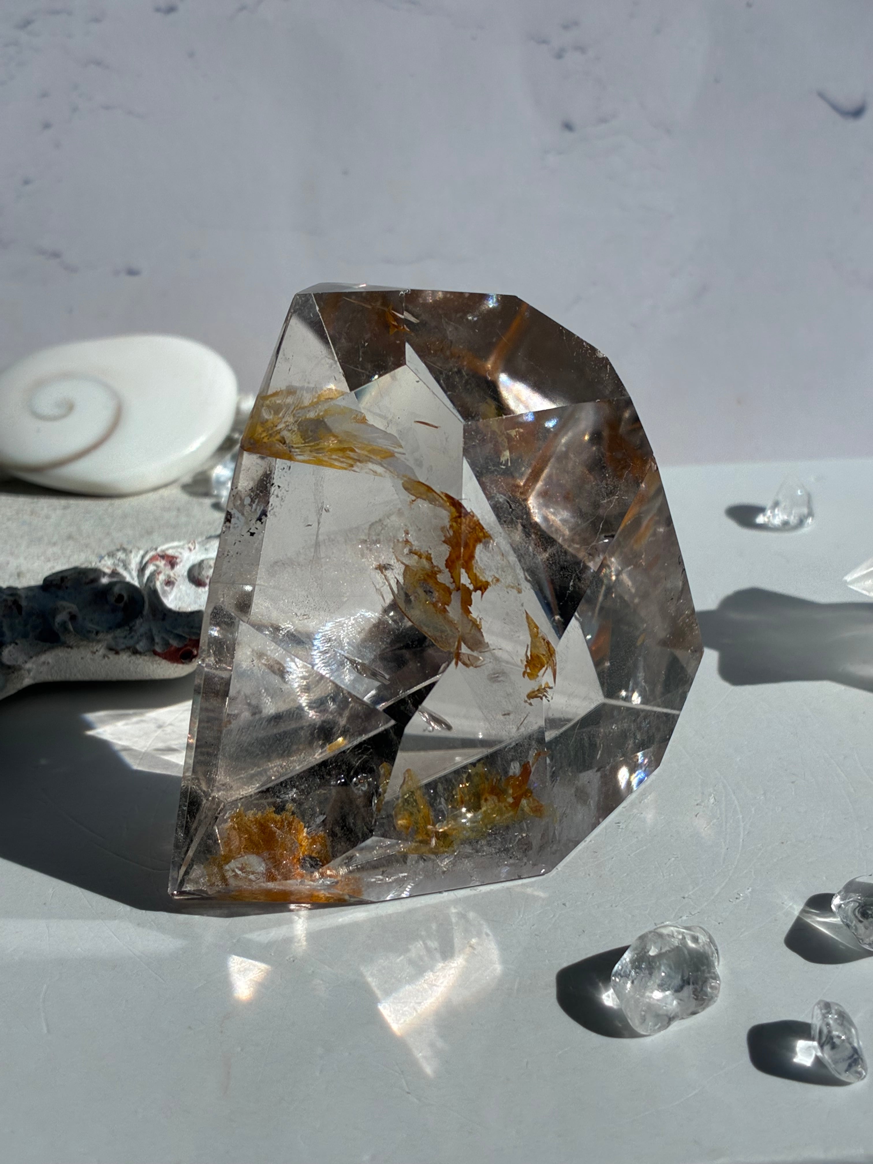インクルージョンのイエローのヘマタイト(鉄成分)がヒラヒラと舞う、オリジナリティ溢れる姿に惚れました。