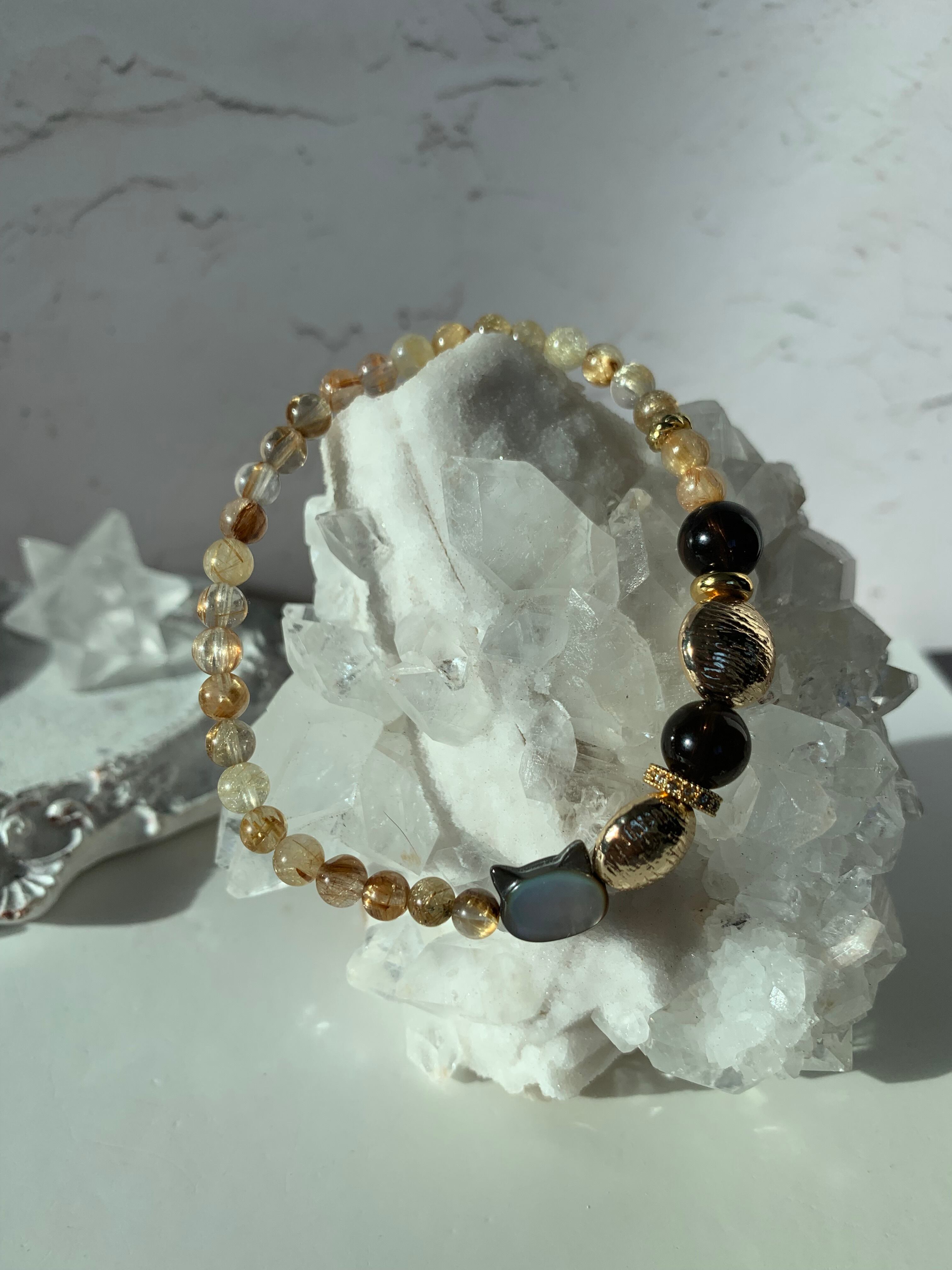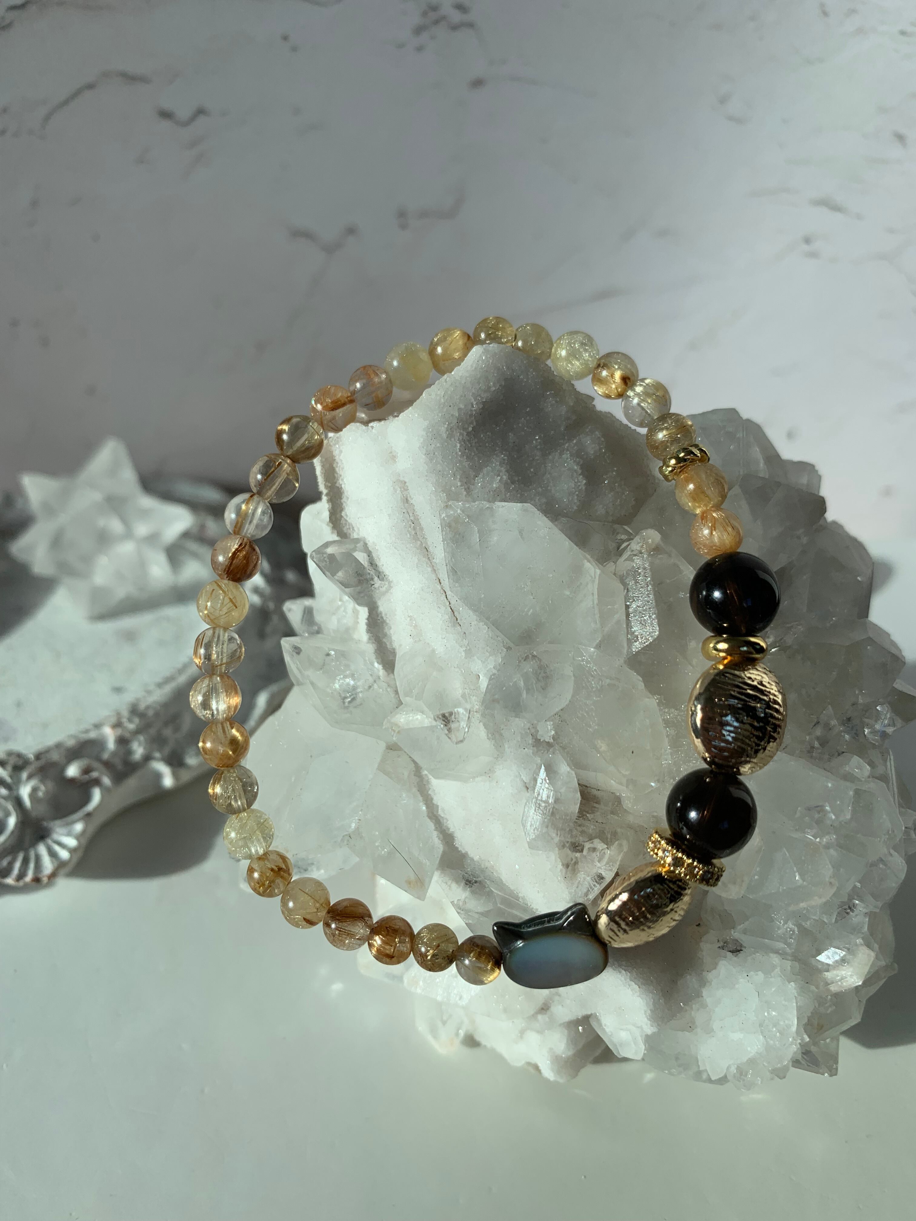 #水晶#ストーン#天然石#crystal#鉱物#ルチルクォーツ#ルチルブレスレット#ルチルクォーツブレスレット#ルチル#ねこ#天然石ブレスレット